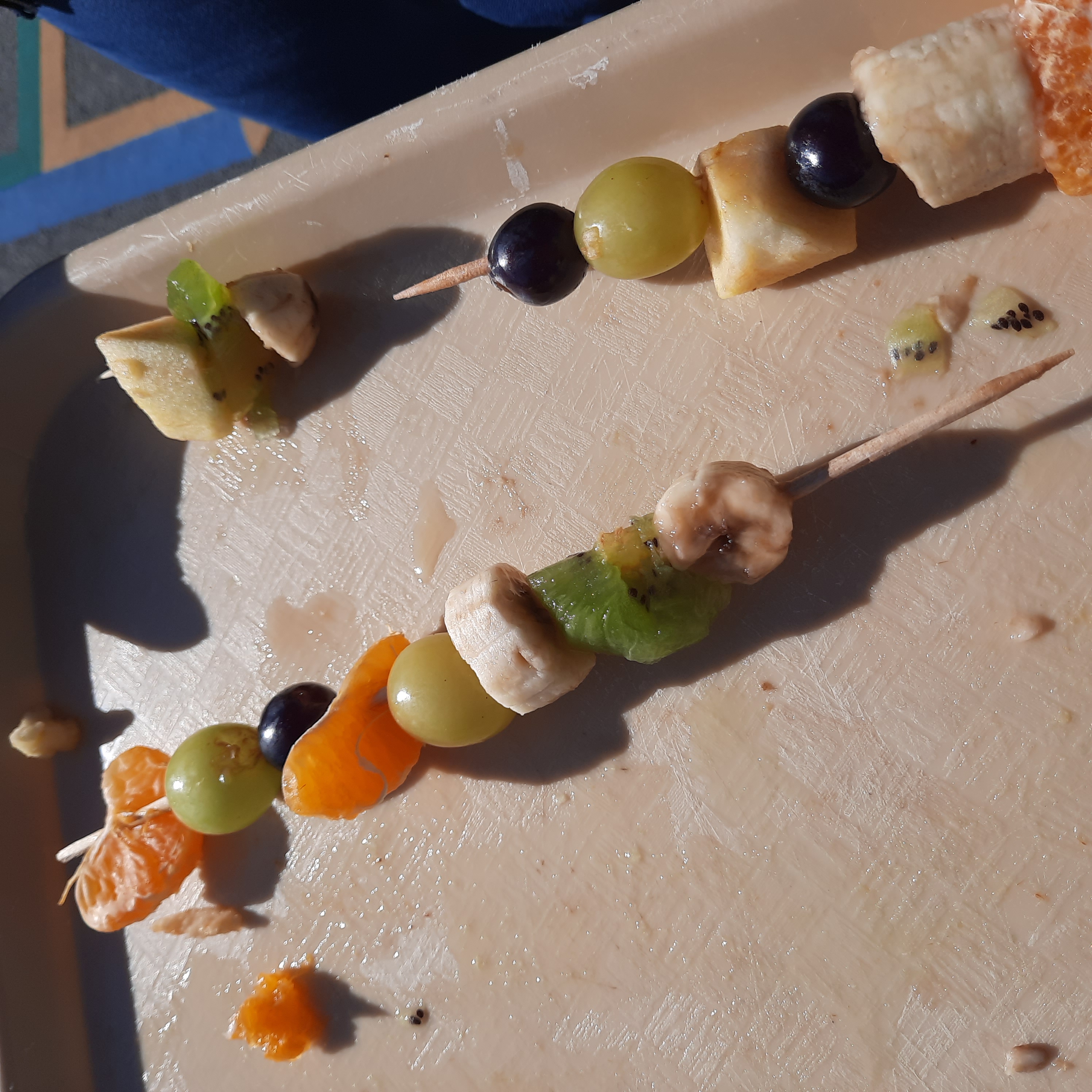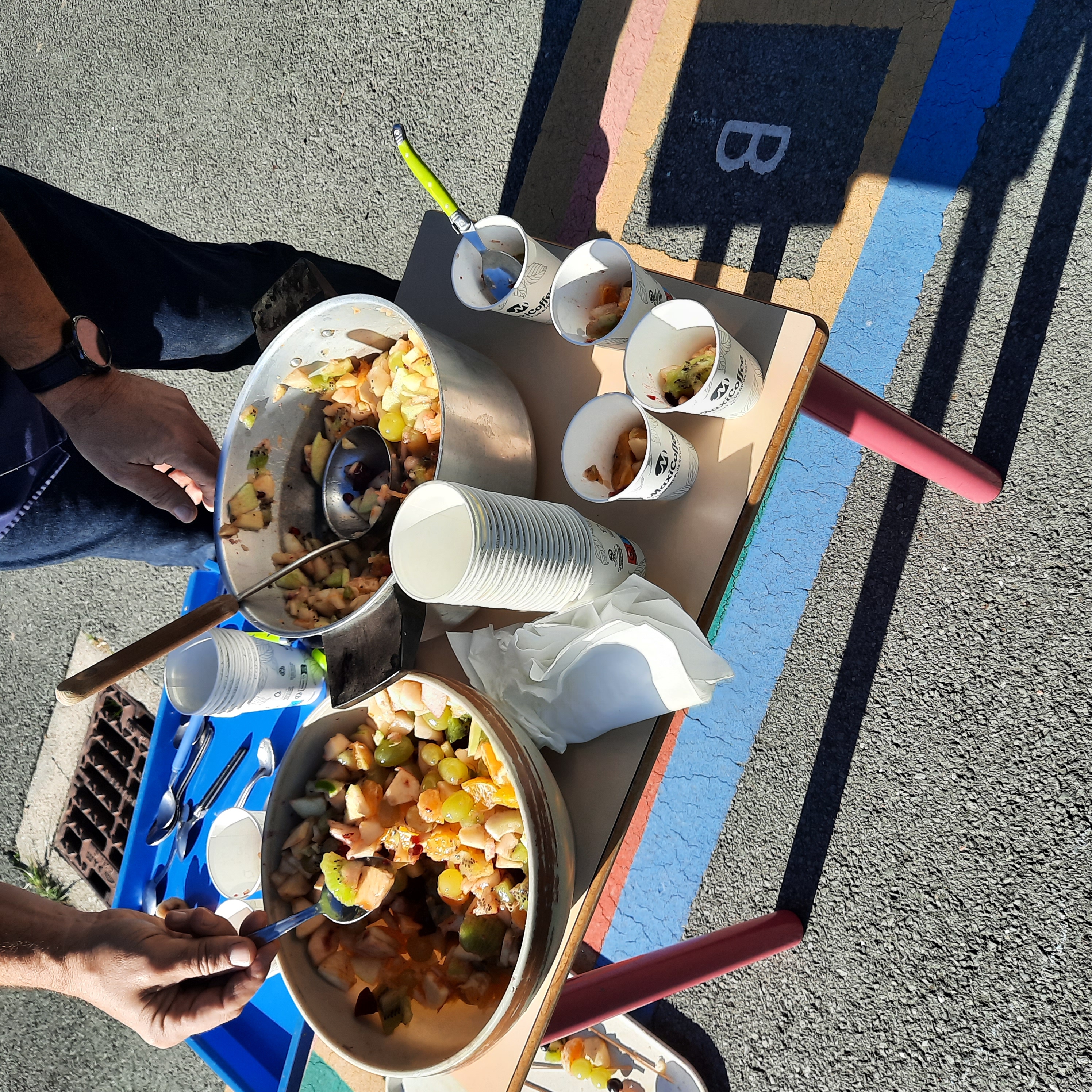 Dans le cadre de la Semaine du Goût, les élèves de moyenne et grande sections se sont rendus au Grand Marché de Royan pour une sortie riche en découvertes !Au fil des allées, les enfants ont pu observer les étals colorés, sentir les différentes odeurs, et rencontrer des professionnels. Une belle occasion d’en apprendre davantage sur les métiers liés à l’alimentation et de mieux comprendre d’où viennent les produits que nous consommons.Les élèves ont choisi et acheté des fruits de saison : pommes, raisins, poires, bananes… De retour à l’école, place à la cuisine ! En petits groupes, ils ont préparé de délicieuses brochettes et une salade de fruits qu’ils ont ensuite dégustées tous ensemble.Une belle aventure gourmande mêlant découverte, apprentissage, autonomie et plaisir du partage !
