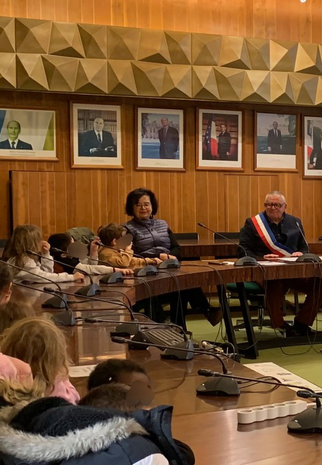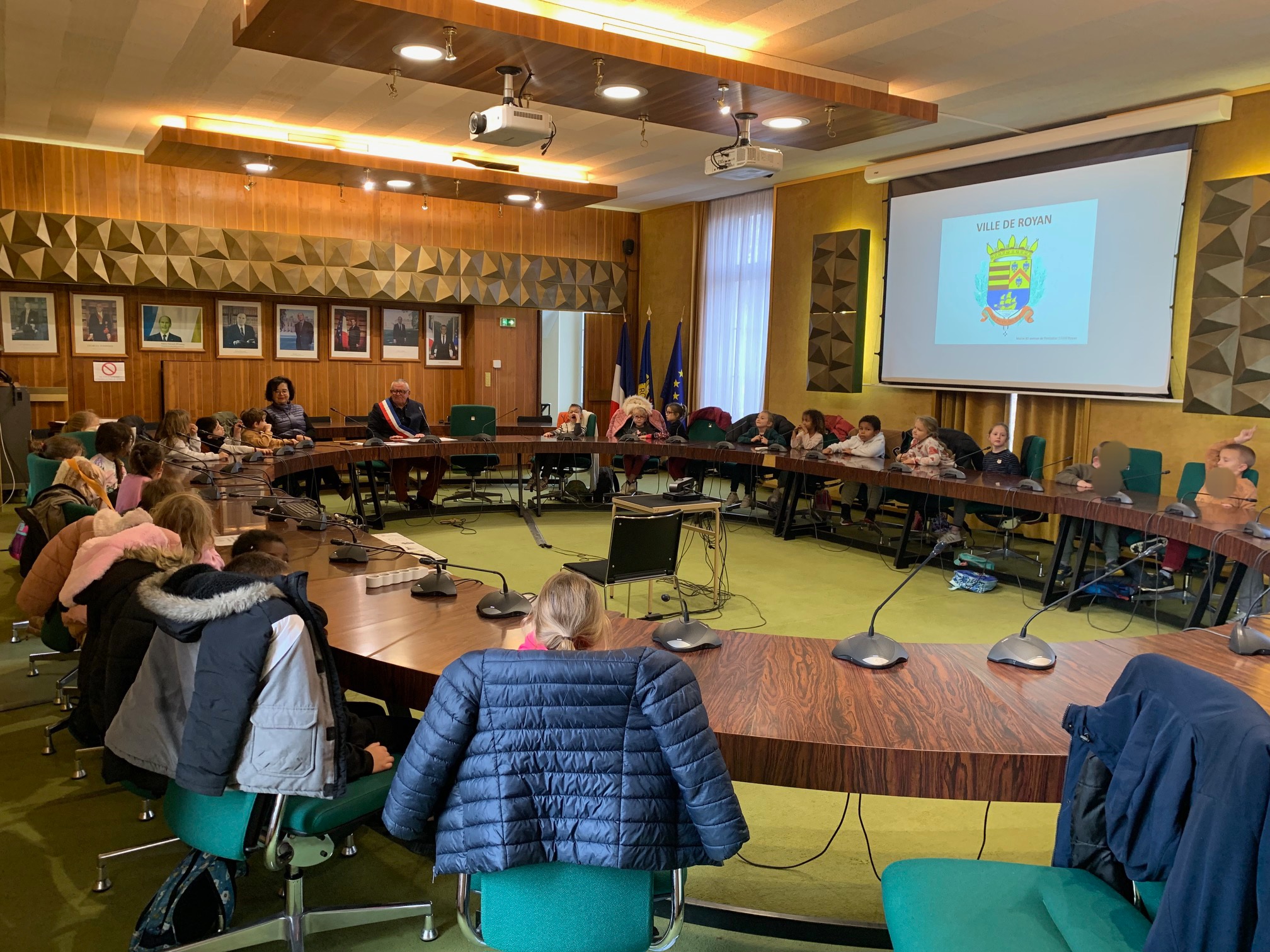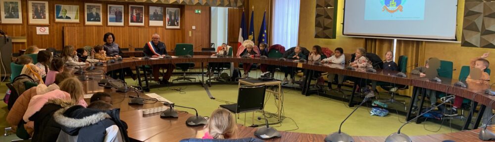 Reçus par M. le Maire et Mme l’Adjointe aux affaires scolaires, les enfants ont pu poser leurs questions, découvrir les symboles de la République… et même visiter le bureau du Maire et la salle des mariages !